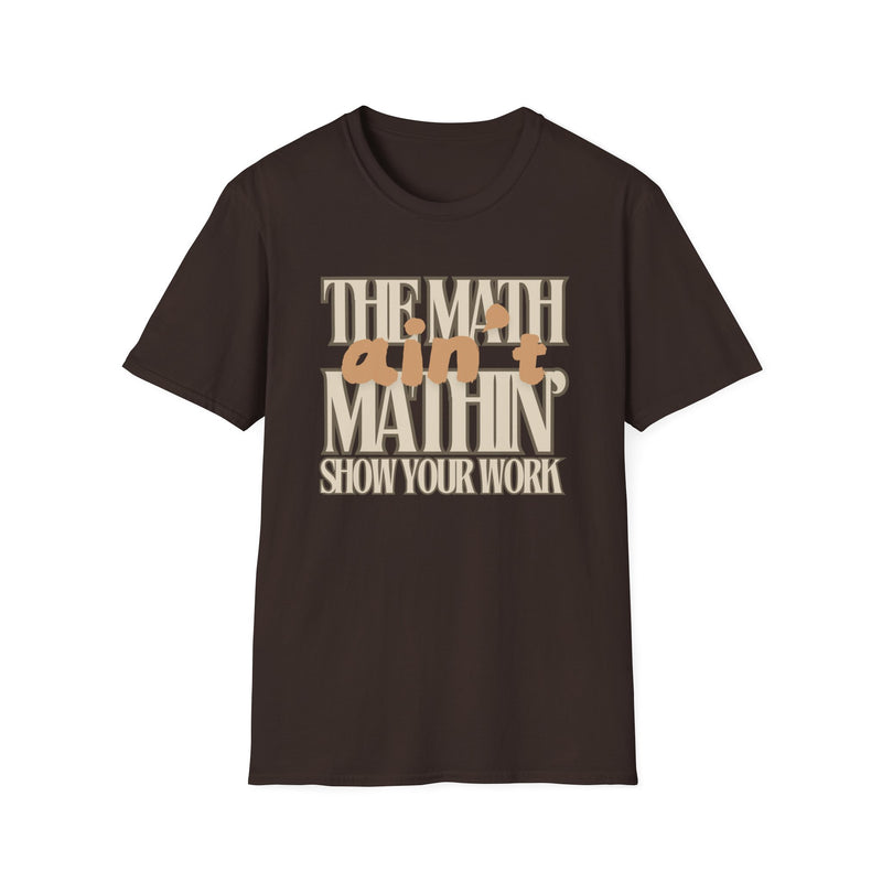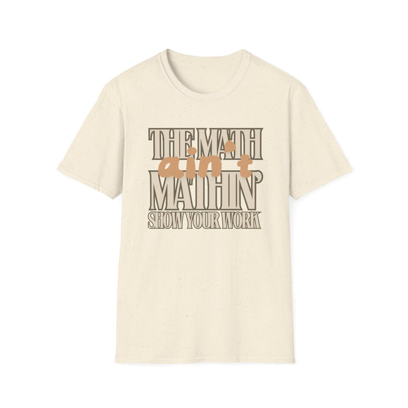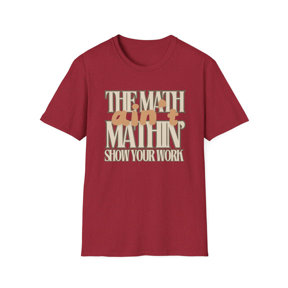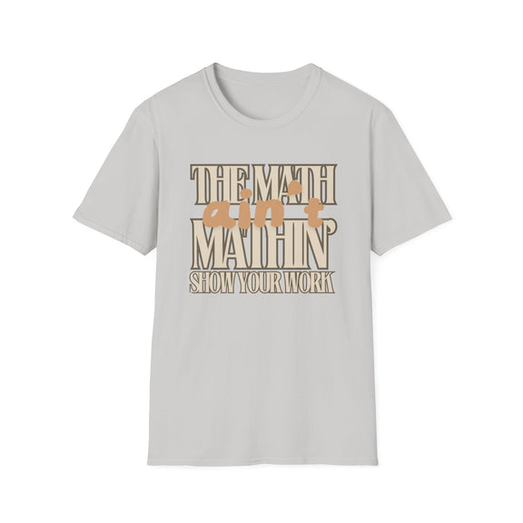 Ever had one of those days when life just isn’t adding up? We’ve all been there, and this "The Math Ain't Mathin" t-shirt says it all! Perfect for math enthusiasts, students, teachers, or anyone who’s ever felt that things just aren't making sense. Made from very soft materials, this tee is 100% cotton for solid colors. Heather colors and sports grey include polyester. The shoulders have twill tape for improved durability. There are no side seams. The collar is made with ribbed knitting to prevent curling damage.